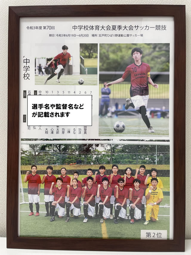 ・集合写真1枚、スナップ写真2枚(横1縦1or横2)と選手名など記載します。
