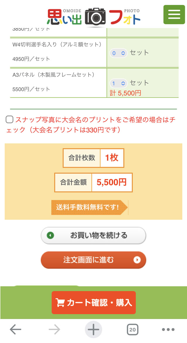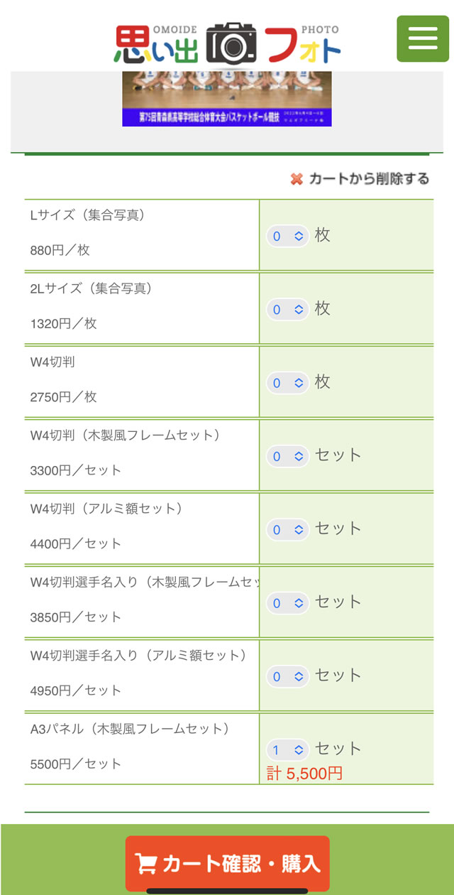 ③その他ご注文のある場合は写真を選んでカートに入れます。